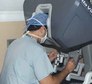Dr. Paul Mazur works the da Vinci robot.